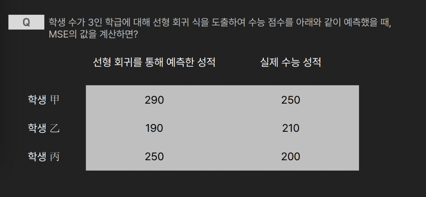 - 선형회귀의 목적: Mean Squared Error (평균 제곱오차)를 최소화 하는 것